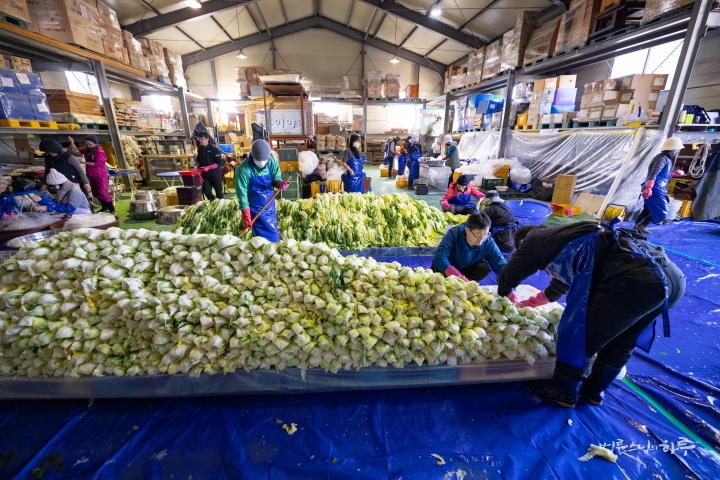 “선물용 김치는 오늘 안에 작업을 모두 끝내겠습니다.”