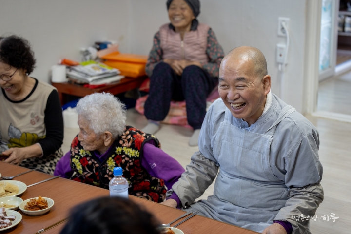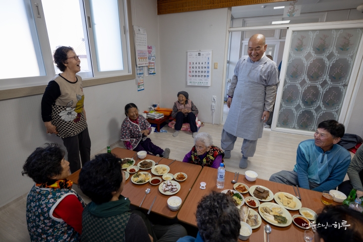 대중이 모두 식사하러 간 사이 스님은 마을 회관으로 향했습니다. 스님의 속가 아버님이 돌아가신 지 올해로 20주년이 되어서 마을 어르신들에게 식사를 대접해 드리기로 했습니다. 아침부터 최말순 보살님과 화광 법사님이 정성껏 음식을 준비했습니다. 스님의 속가 누님도 갖가지 반찬을 준비해 오셨습니다.