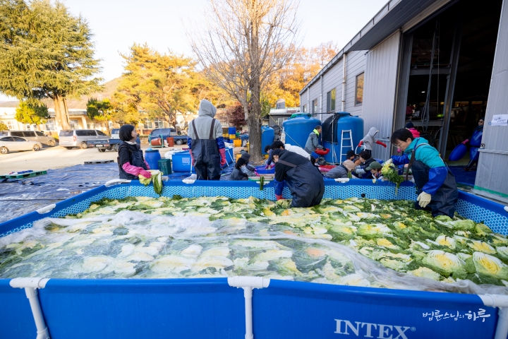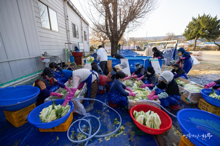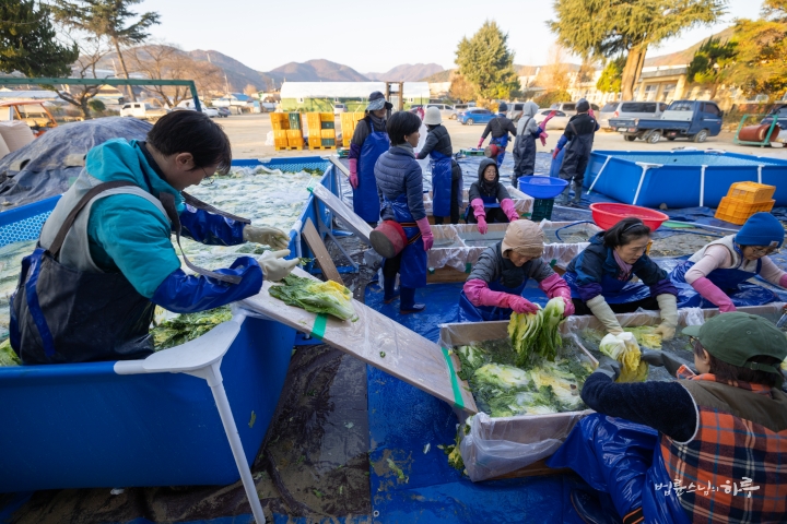 모두 작업복과 고무장화를 신고 와서 배추를 씻는 일부터 함께 했습니다.