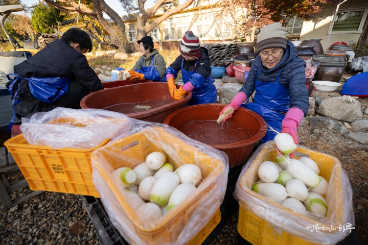 “올해 무 농사가 제대로 안 되어서 처음으로 무를 사 와서 김장을 하고 있습니다. 저도 태어나서 이렇게 가을에 비가 많이 온 걸 처음 경험해 봅니다. 다들 올해 농사 수확량이 어떻습니까?”