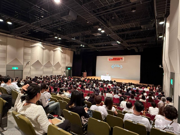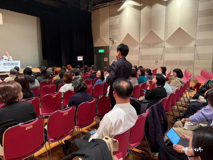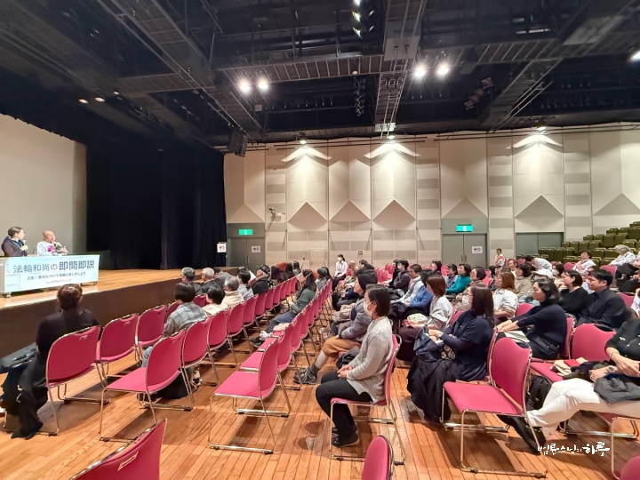 대기실에서 도시락으로 저녁 식사를 한 후 7시가 되어 강연장으로 향했습니다. 저녁에는 한국 교민들을 위한 즉문즉설 강연이 닛포리써니홀(日暮里サニーホール)에서 열렸습니다.