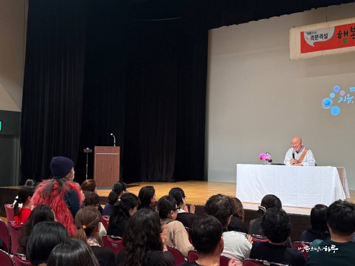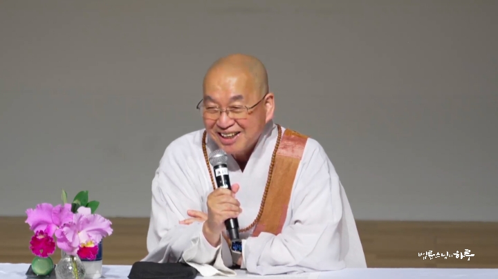 이어서 차례대로 손을 들고 스님에게 질문을 했습니다. 1시간 30분 동안 여섯 명이 손을 들고 스님과 대화를 나누었습니다. 그중 한 명은 초등학교 4학년 아이가 하루 종일 유튜브를 보고 게임을 해서 고민이라며 어떻게 아이를 교육하면 좋을지 스님에게 조언을 구했습니다.