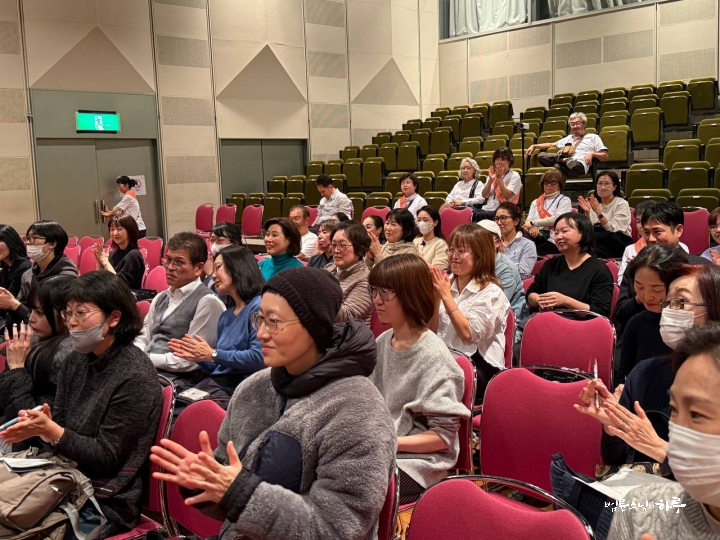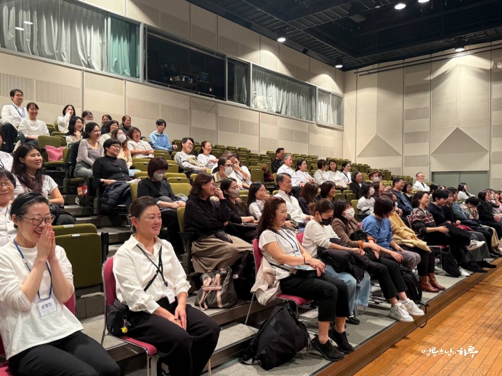 이어서 사전에 질문을 신청한 분들부터 차례대로 대화를 나누고 현장에서도 질문을 받았습니다. 두 시간 동안 열 명이 스님에게 질문을 했습니다. 그중 한 명은 오랜 해외 생활 끝에 찾아온 고향에 대한 그리움을 털어놓았습니다.