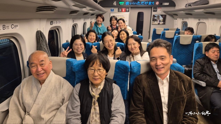 스님은 새벽 수행과 명상을 마친 후 5시 30분에 숙소를 나와 도쿄로 이동하기 위해 오사카역으로 향했습니다. 6시 8분에 오사카역을 출발하는 신칸센 기차를 타고 도쿄로 향했습니다. 강연을 준비하는 활동가들도 스님과 함께 기차를 타고 이동했습니다.