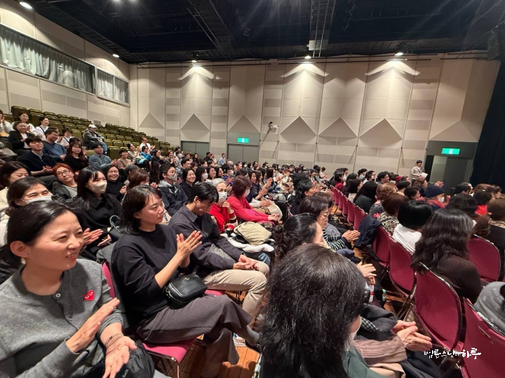 한국 교민 350여 명이 자리한 가운데 저녁 7시가 되자 스님을 소개하는 영상이 상영되었습니다. 영상이 끝나자 스님이 무대 위로 걸어 나왔습니다. 큰 박수와 환호가 쏟아졌습니다. 스님이 환한 웃음을 보이며 인사말을 건넸습니다.