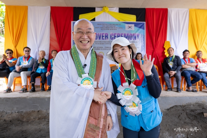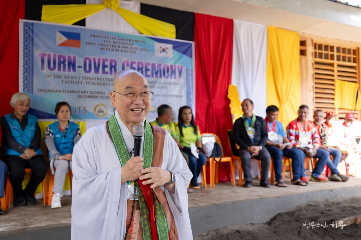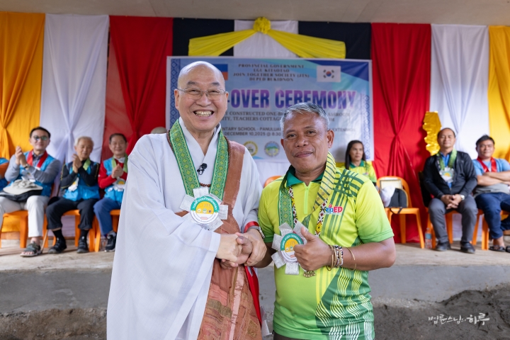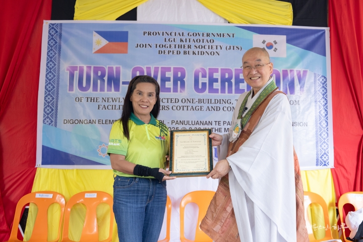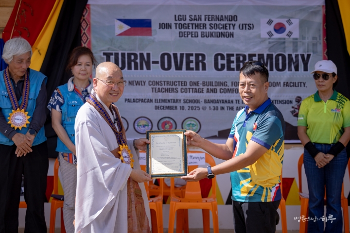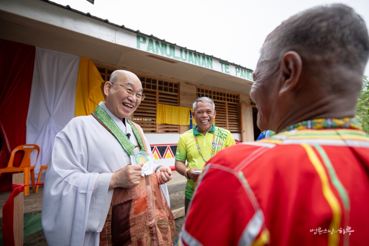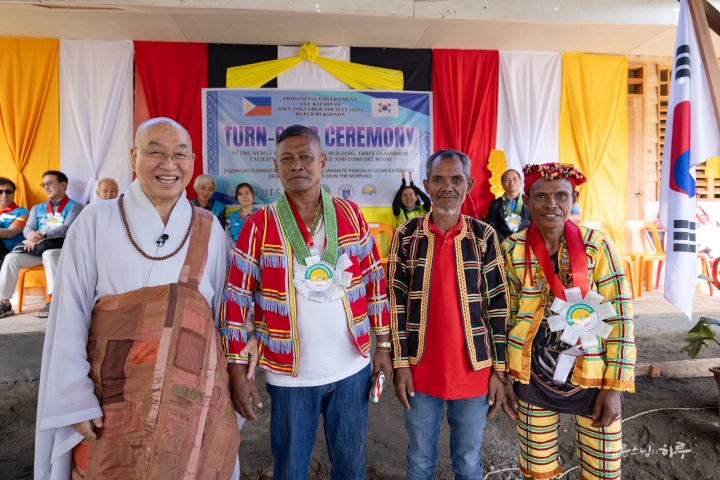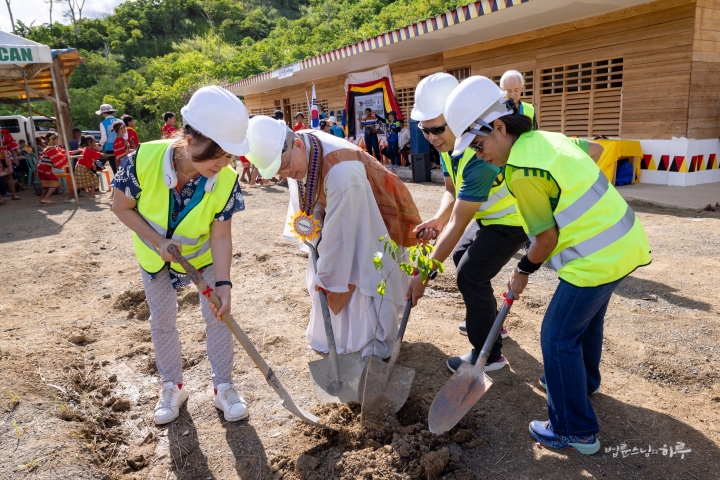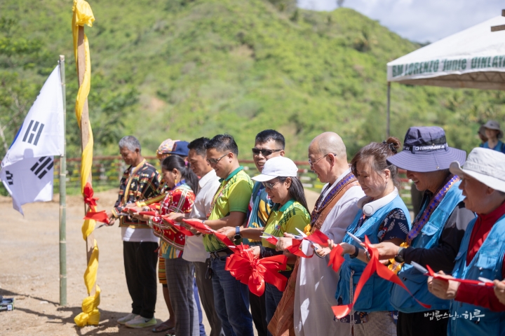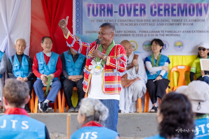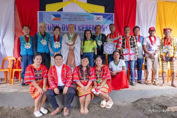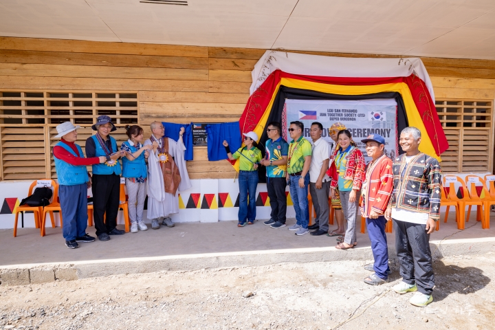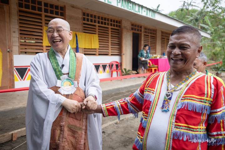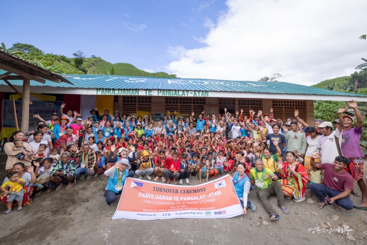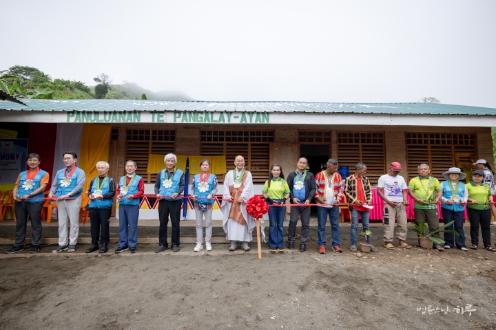 "2024년 3월, 법륜스님이 처음 이곳 빵아라이아얀을 방문했을 때, 이 지역에 학교가 얼마나 절실히 필요한지 확인할 수 있었습니다. 필리핀 교육부(DepEd)의 적극적인 협조로 부키드논 주 정부는 특별 예산을 편성해 이 학교 건립을 지원하였습니다. 2월에 첫 삽을 뜬 후 본격적인 공사가 시작되었습니다. 하지만 학교를 짓기 위해선 두 개의 강을 열한 번이나 건너야 하고, 험난한 지형을 넘어야 했습니다. 여러 운반 방법을 시도했지만 난관은 계속되었습니다. 결국, 이 프로젝트를 가능하게 한 것은 바로 공동체의 단합이었습니다. 교사, 학부모, 다투, 시티오 리더가 주민들을 잘 조직해 이끌었고, 늦은 밤에도 교사들이 자재 수령을 확인하고, 여성들도 자재 운반에 참여했습니다. 어르신들, 청년들, 오토바이 운전자들, 말을 탄 운반자들 모두가 모래, 자갈, 시멘트, 철근 등의 자재를 옮기는 데 힘을 보탰습니다. 현장 관리자와 기술자들도 주말과 야근을 마다하지 않고 헌신했습니다.많은 사람들의 노력 덕분에 교실 3개, 화장실, 교사용 숙소를 포함한 한 개 동이 오늘 완공을 하게 되었습니다. 부키드논 주는 기술 자문과 인력을 지원했고, JTS는 건축 자재와 운반 비용, 식비를 지원했습니다. 지방 자치 단체는 추가 운반 지원을 제공했으며, 교육부는 긴밀한 협조 속에 교사 추가 배정을 계획해 주었습니다."