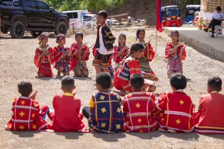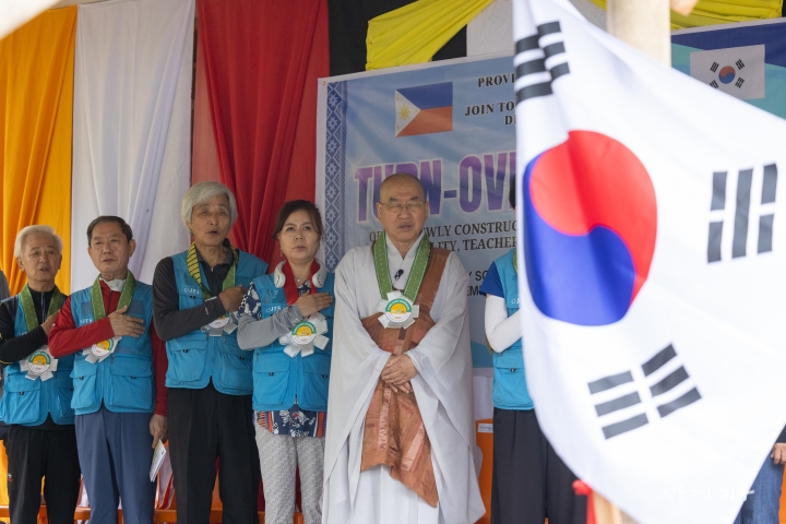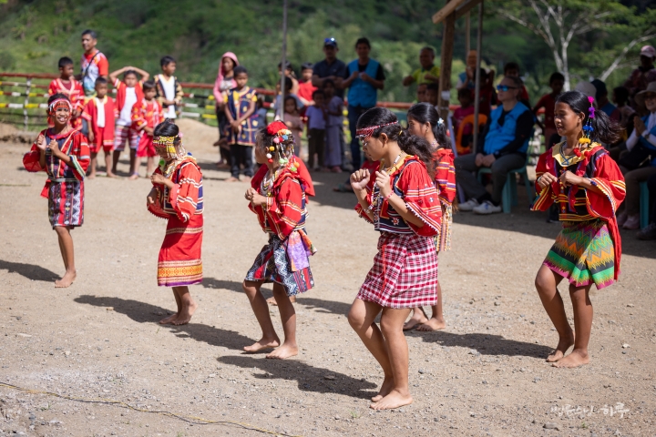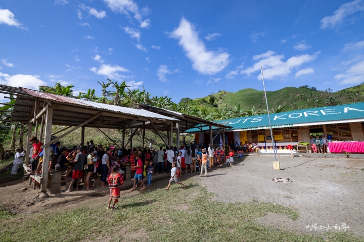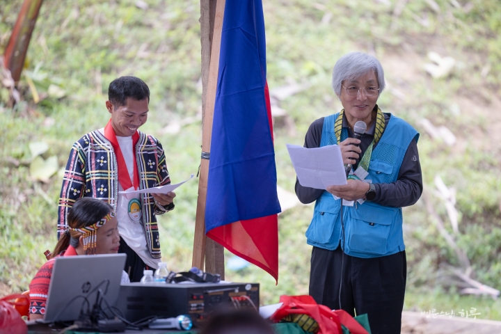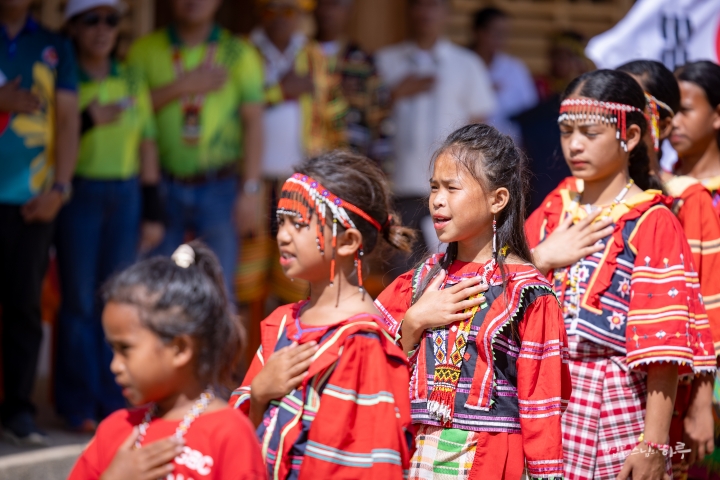 이어서 필리핀 국가와 애국가를 함께 불렀습니다. 산골 오지 마을에 태극기가 펄럭이고 애국가가 울려 퍼지자, 가슴 한편이 뭉클해졌습니다.