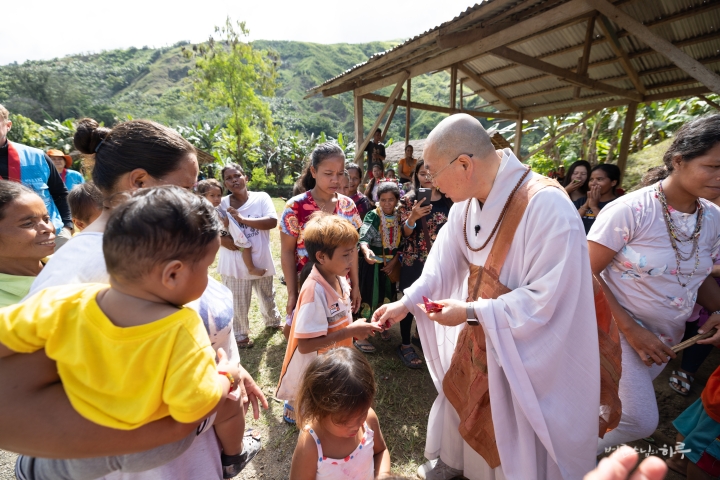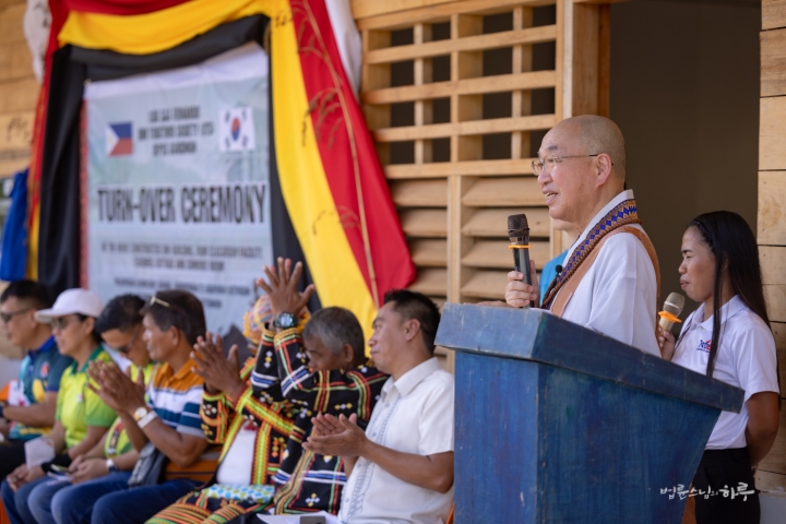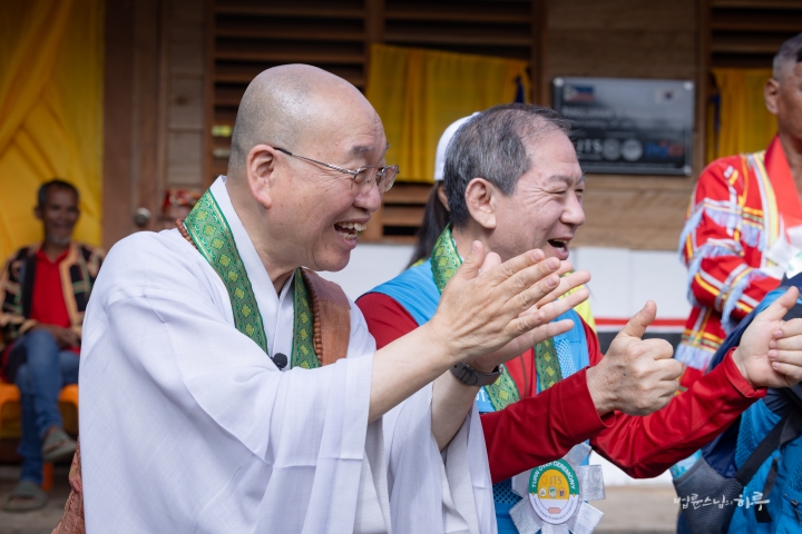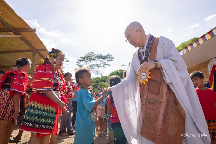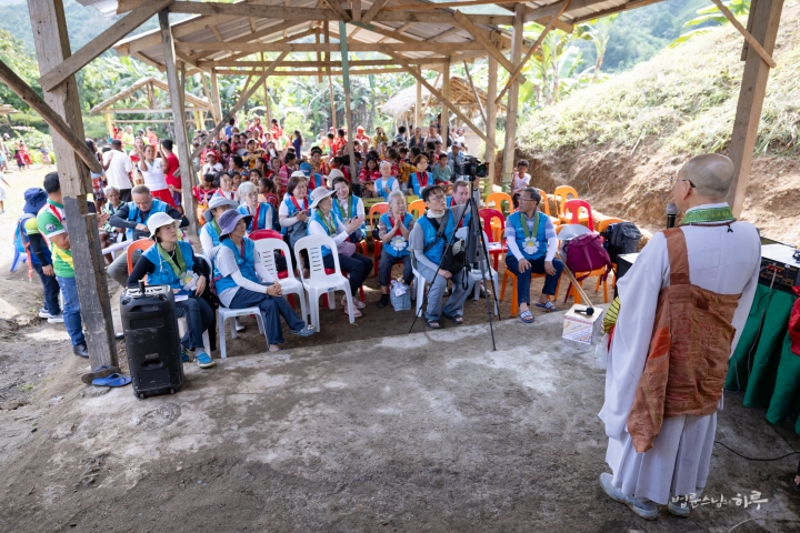 마을 주민들과 학생들도 뜨거운 박수로 감사의 마음을 표현했습니다. 계속해서 스님이 말을 이었습니다.