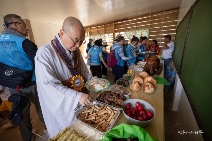 JTS 방문단은 마을 주민들이 정성껏 준비한 음식들을 감사한 마음으로 먹었습니다. 식사를 마친 스님에게 부키드논 주 교육감이 찾아와 한 가지 건의 사항을 말했습니다.