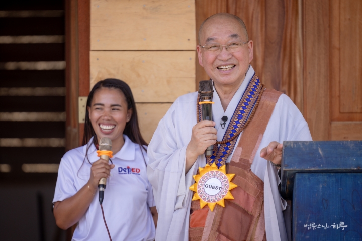이어서 부키드논 주 교육감이 감사 인사를 했습니다. 교육감은 원주민 아이들에게 교육 기회를 열어 준 JTS와 법륜스님께 깊은 감사의 마음을 전했습니다.