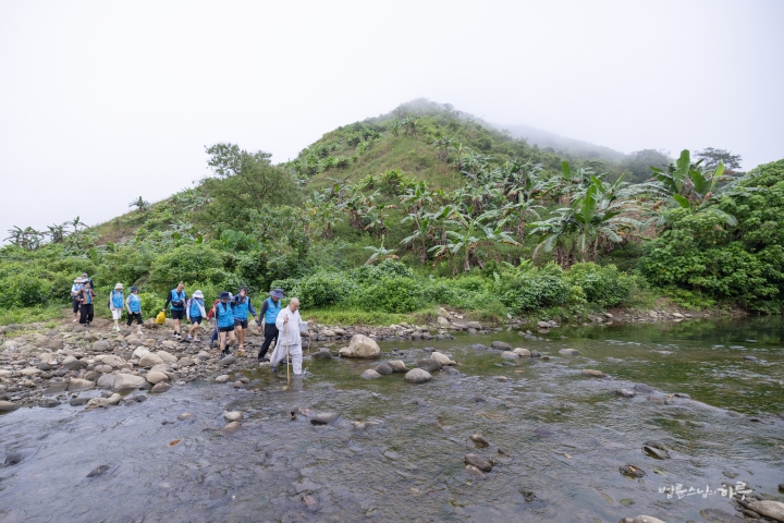 큰 강을 무사히 건넌 일행은 젖은 바지와 신발을 그대로 신고, 이어지는 산길과 개울을 따라 걷기 시작했습니다. 굳이 발을 닦을 필요가 없었습니다. 앞으로도 아홉 번 더 개울을 건너야 했기 때문입니다.