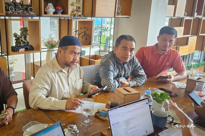 오전 10시에는 이번 인도네시아 긴급구호 활동을 도와주고 있는 아미르 님과 현지 협력 단체인 FDP 관계자들과 구호물품 배분 계획을 수립하는 회의를 했습니다.