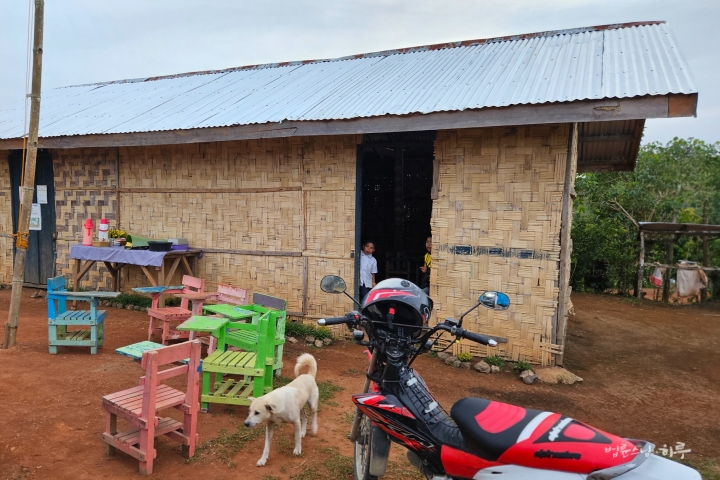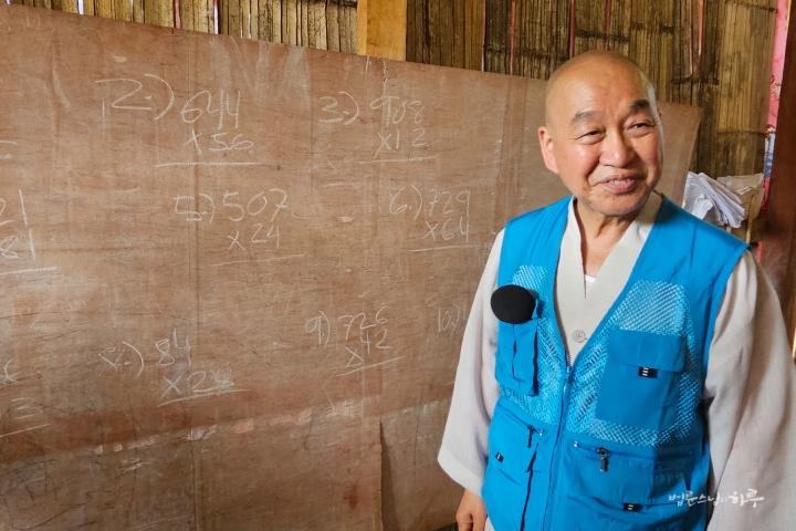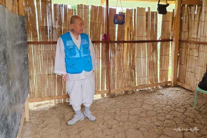 임시로 지어놓은 교실에 들어서니 대나무로 엮은 벽과 흙바닥, 그리고 나무판자로 만든 칠판이 눈에 들어왔습니다. 아무리 임시 교실이라 해도 너무나 열악한 환경이었습니다.