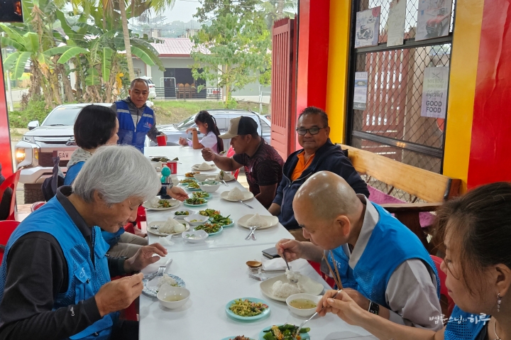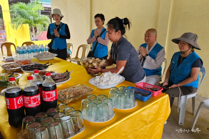오후 6시 30분, 인근에 있는 시누다(SINUDA) 중앙초등학교에서 저녁식사를 했습니다. 식사를 하며 오늘 답사를 정리했습니다. 스님이 말했습니다.