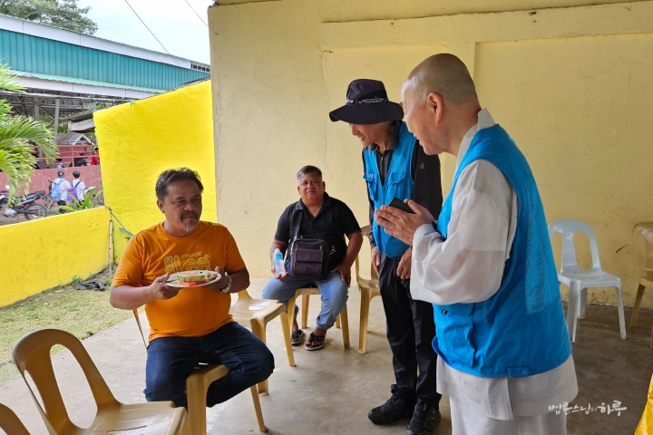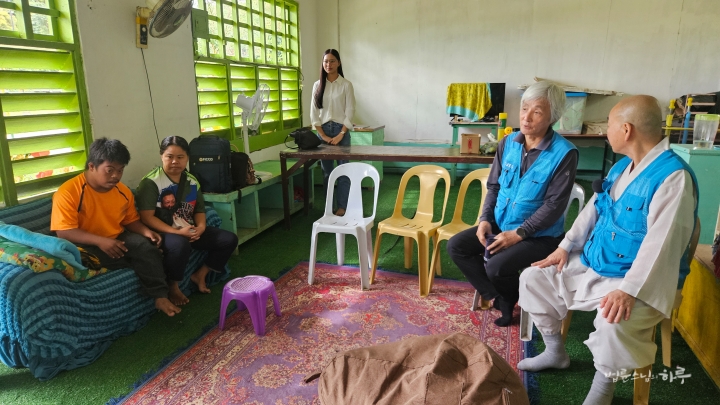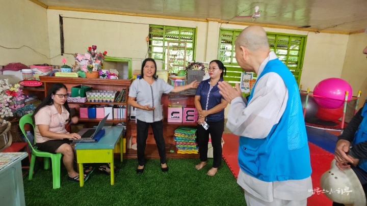 교육청 직원이 설명했습니다. 스님은 합장하며 인사를 건넸습니다.