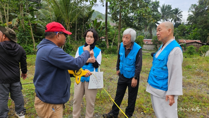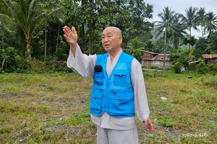 학교를 지을 부지를 살펴보던 스님이 중장비 문제를 지적했습니다.