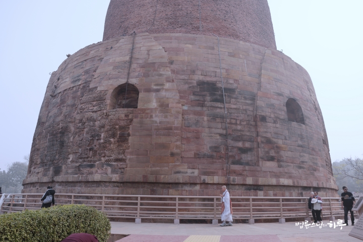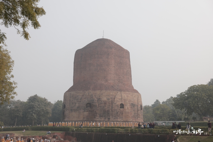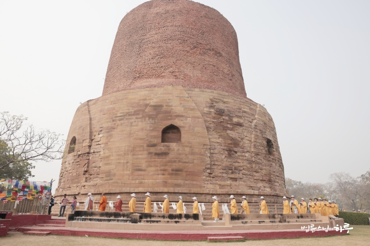 사르나트에 도착한 스님은 첫 설법지에 세워진 다르마라지카 스투파(Dharmarajika Stupa)를 참배하고, 이어서 부처님의 두 번째 설법을 하신 장소를 기념하는 다메크 스투파(Dhamek Stupa)를 참배했습니다.