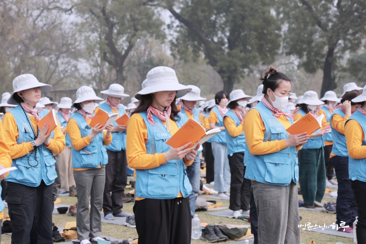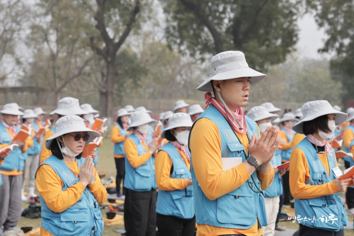 2,600년 전 사르나트에서 다섯 수행자가 부처님의 첫 제자가 되었습니다. 이로써 부처님(불), 가르침(법), 수행공동체(승)가 갖추어졌고, 이 '삼보'는 불교가 수천 년의 세월을 지나 우리에게 전해질 수 있었던 토대가 되었습니다. 그리고 오늘, 500명의 정토행자들이 같은 자리에서 부처님의 가르침을 따르겠다고 서원했습니다.