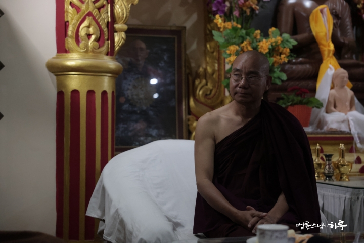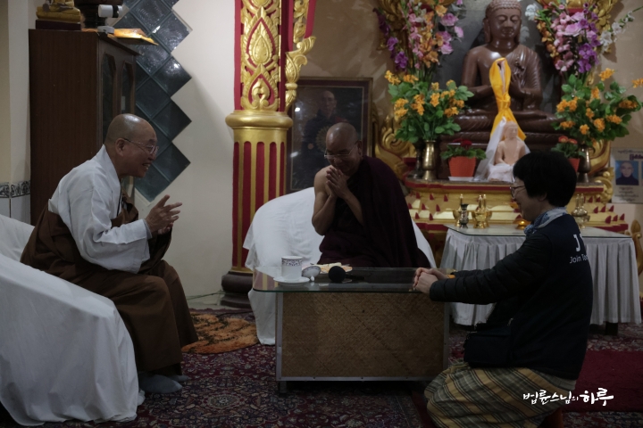 곧바로 성도재일 법회 방송을 위해 미얀마 절로 이동했습니다. 성도재일은 부처님이 깨달음을 얻은 날을 기념하는 날입니다. 방송 전 미얀마 절 주지 스님을 만났습니다. 작년 성지순례 때도 순례단에게 숙소를 제공해 주어 인사를 나눈 분입니다. 스스로를 라카인족이라 소개한 주지 스님도 어려운 사람들을 돕는 활동을 하고 있었습니다.