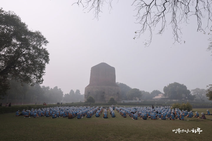 안녕하세요. 사르나트에서 35차 인도성지순례 둘째 날이 밝았습니다. 오늘 스님은 사르나트에서 수계식을 진행하고, 오후에는 태국 절과 미얀마 절 주지 스님을 만났습니다. 저녁에는 온라인으로 성도재일 법문과 정토담마스쿨 졸업식 법문을 했습니다.