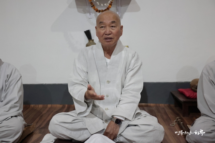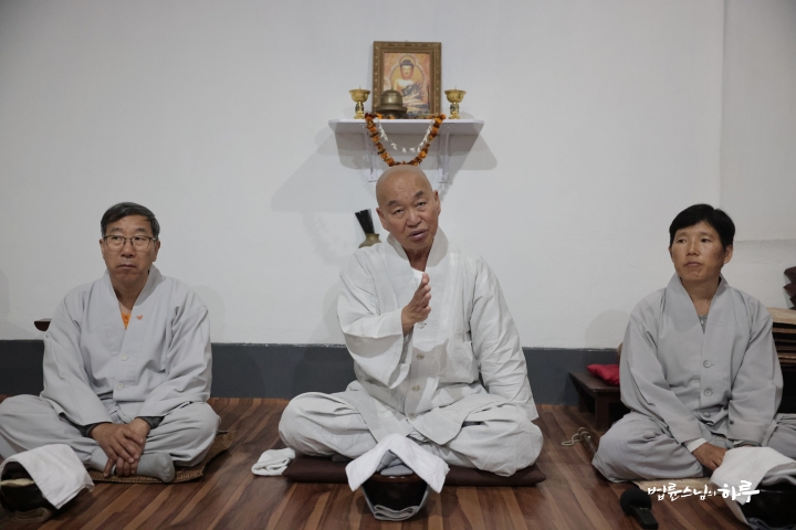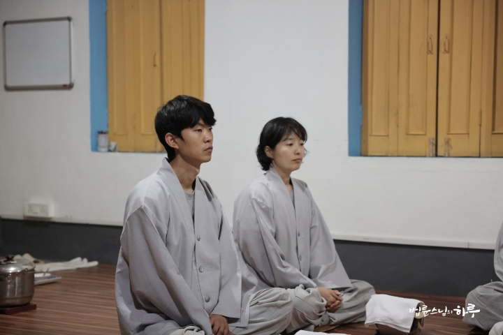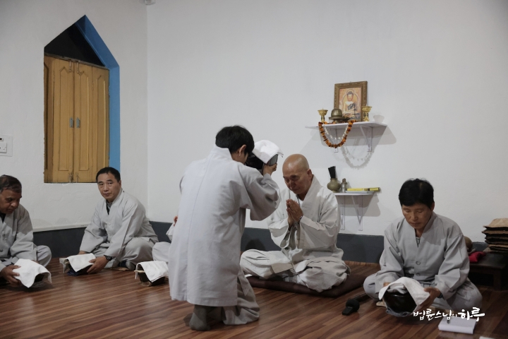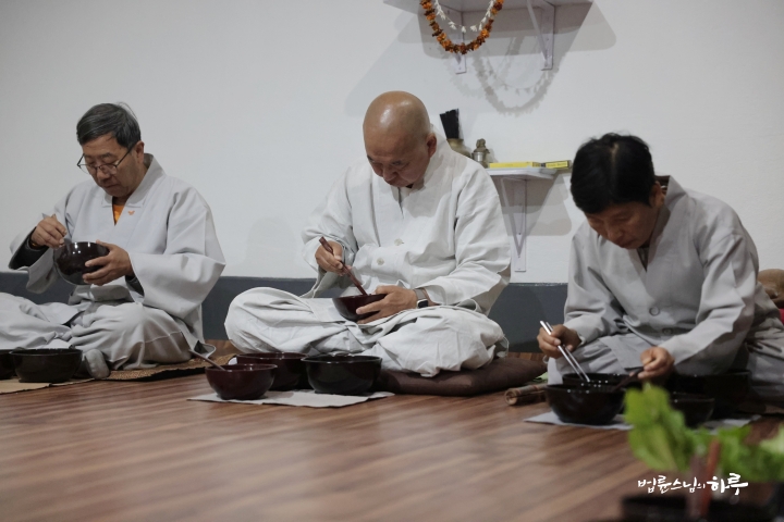 스님은 새벽 명상과 수행을 하고 대중들과 함께 발우공양을 했습니다.