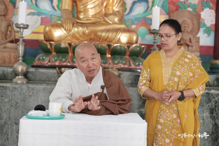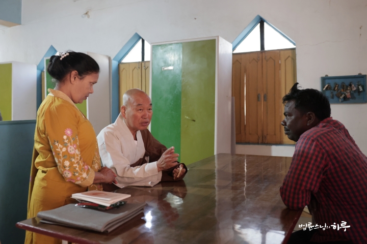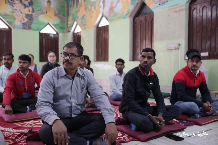 마지막으로 스님이 더 질문하고 싶은 내용이 있는지 묻자 인도인 스태프 중 한 명은 마을의 토지 문제를 이야기했습니다. 과거 정부로부터 분배받은 마을 땅을 원래 지주 측이 브로커를 동원해 되찾으려 하고 있으며, 각 가정을 찾아다니며 협박까지 하는 상황이라고 했습니다. 본인은 마을 사람들과 함께 이에 반대하며 앞장섰지만, 거절 이후 경찰 신고와 재판 문제까지 번지면서 오히려 마을 안에서 고립되는 어려움을 겪고 있다고 호소했습니다.