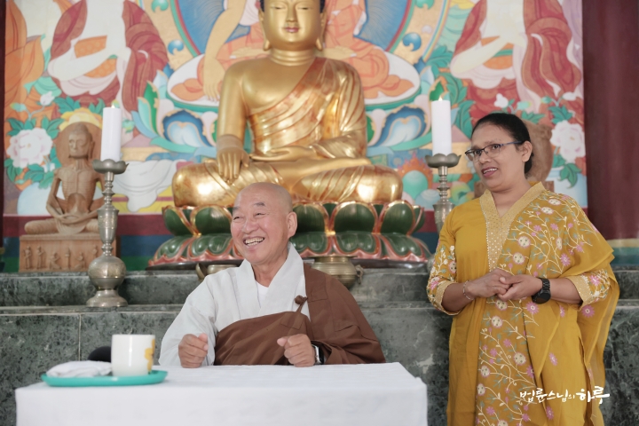 이어서 바브랄지가 오늘 출국하는 스님에게 인사를 하기 위해 사무실에 찾아왔습니다.