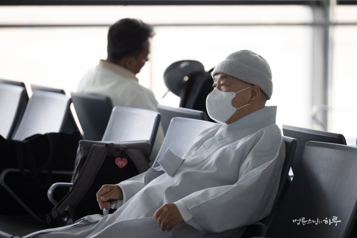 스님은 새벽 수행을 마친 후 오전 6시에 서울 정토회관을 출발하여 인천공항으로 향했습니다.