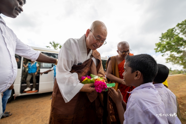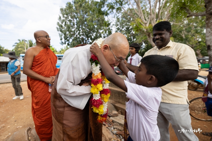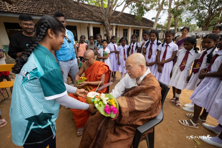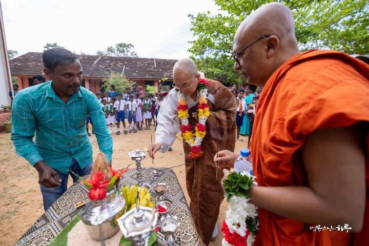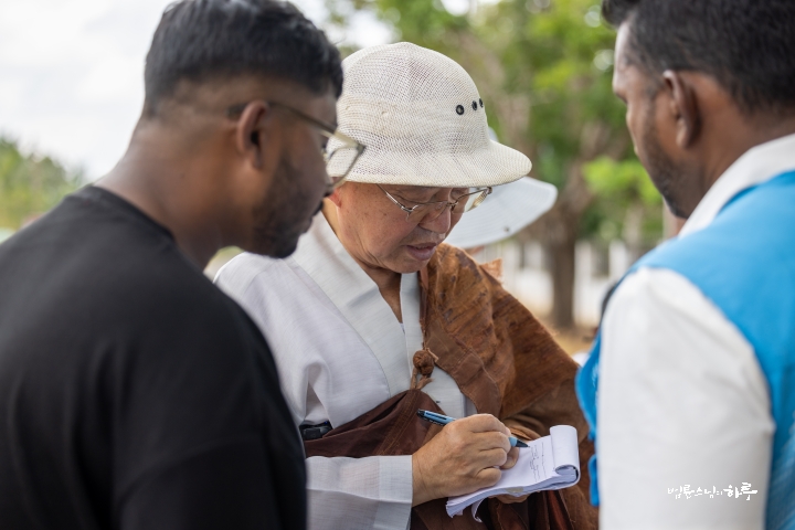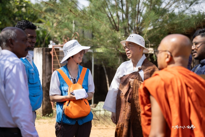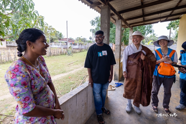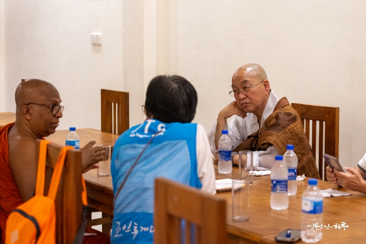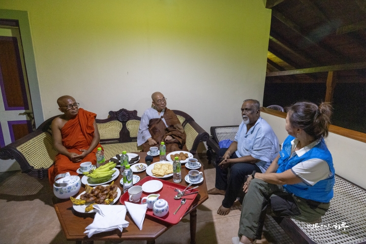 자리에 앉아 간단히 안부를 나눈 뒤, 스님은 이번 스리랑카 방문의 경위를 설명했습니다. 원래 스리랑카 방문 계획은 없었지만, 다른 해외 일정이 변경되면서 이번에 방문하게 되었다고 했습니다. 이번 방문의 목적은 스리랑카에서 진행 중인 홍수 피해 복구 지원 현장과 북부 타밀 이주민 지역의 상황을 직접 살펴보는 것이라고 덧붙였습니다.