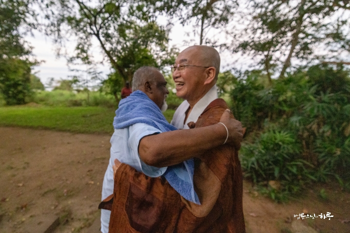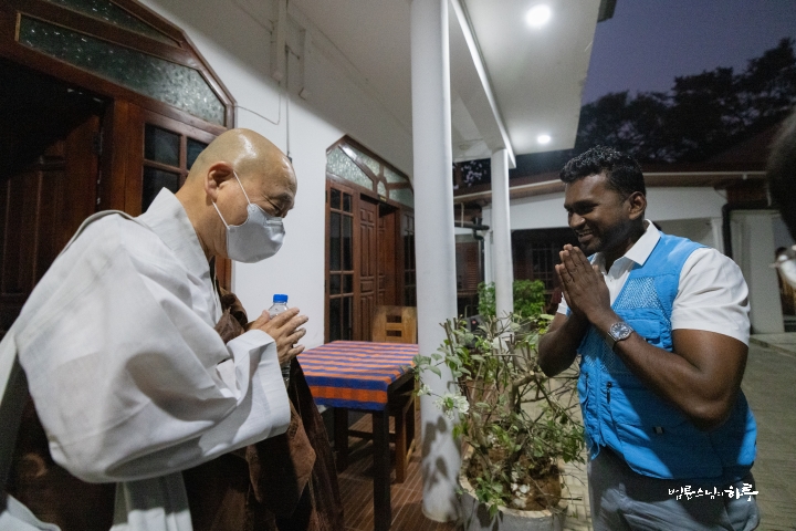 원래 예정에 없던 일정이었지만, 스님이 하르샤 박사님에게 스리랑카를 방문했다는 소식을 전했고, 일정이 맞아 오늘 돌아가는 길에 만나게 되었습니다. 스님이 도착하자 하르샤 박사님이 직접 밖으로 나와 반갑게 포옹했습니다.