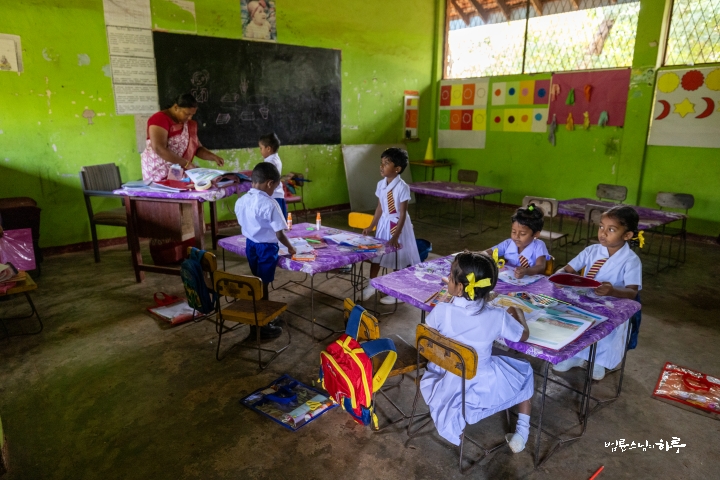 1학년부터 11학년까지 200명이 다니는 정부 학교였습니다. 이 지역은 내전 당시 남부에서 올라온 타밀 이주민들이 정착한 곳입니다. 1984년 스리랑카 내전 때 피난을 왔던 이들 가운데 한 사람이 지금 교장으로 일하고 있다고 했습니다.