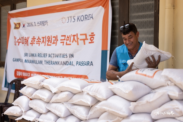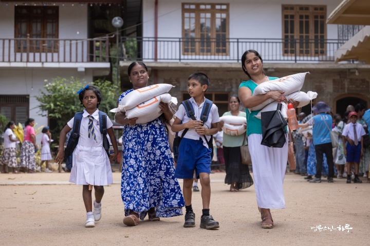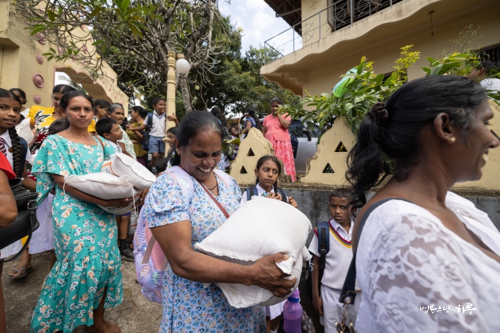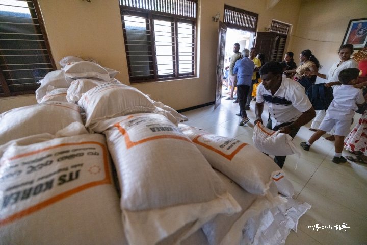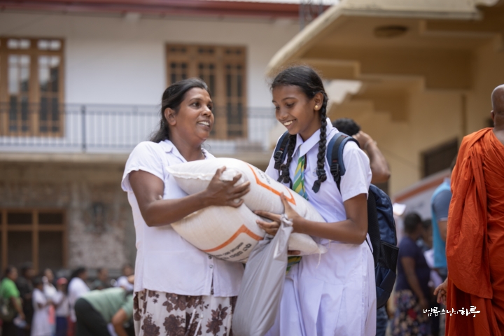 이렇게 구호품을 지원할 수 있도록 준비해 준 담마난다 스님을 비롯해 스리랑카JTS 활동가 여러분께 깊이 감사드립니다. 그리고 이 절을 배분 장소로 사용할 수 있도록 허락해 주신 주지 스님께도 감사드립니다. 작은 선물이지만 여러분이 어려움을 이겨 내는 데 조금이나마 보탬이 되기를 바랍니다.”