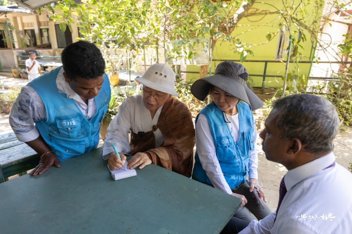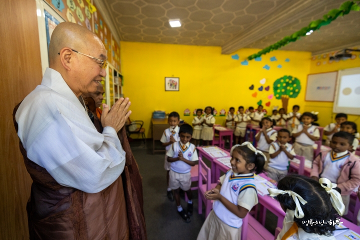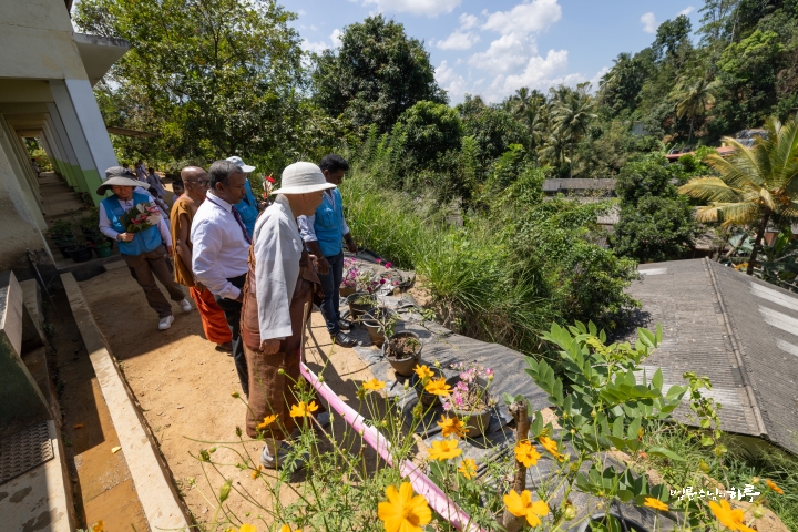 “학교를 아주 깔끔하게 잘 운영하고 계시네요. 절에서 이런 학교를 운영해 주셔서 감사합니다. 이번에는 홍수 피해 지역을 살펴보러 왔기 때문에 우선은 피해 지역을 먼저 지원하겠습니다. ”