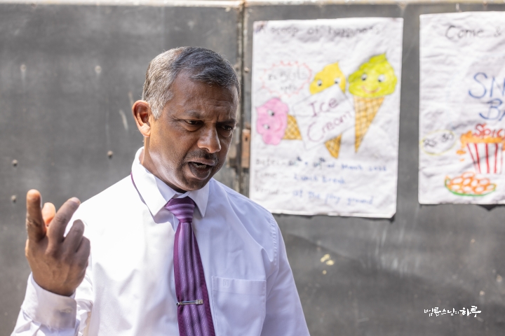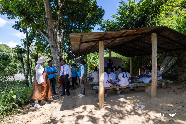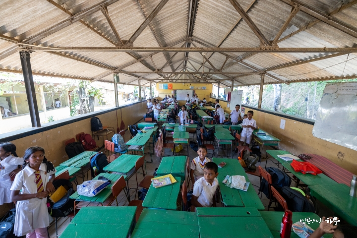 무너진 축대는 학부모들이 품을 들여 해결할 수 있는 수준이 아니었습니다. 그러나 문제는 축대만이 아니었습니다. 학교 안으로 들어서자, 교실 부족 문제가 훨씬 더 절실하게 다가왔습니다. 학생 710명이 1학년부터 13학년까지 공부하고 있었는데, 교실이 크게 부족했습니다. 강당 한 공간에서 네 학급이 동시에 수업을 듣고 있었고, 어떤 반은 야외에서 수업을 하고 있었습니다.