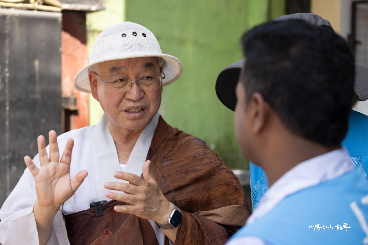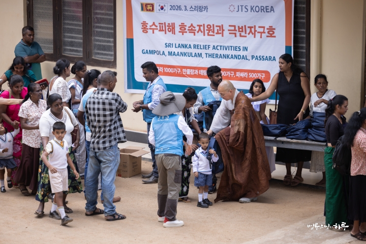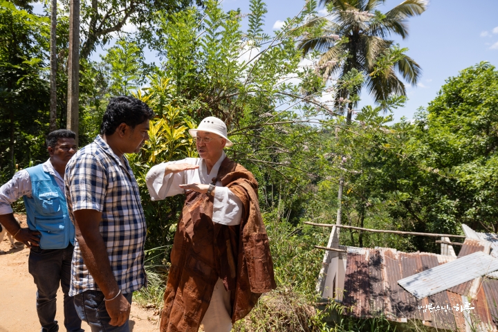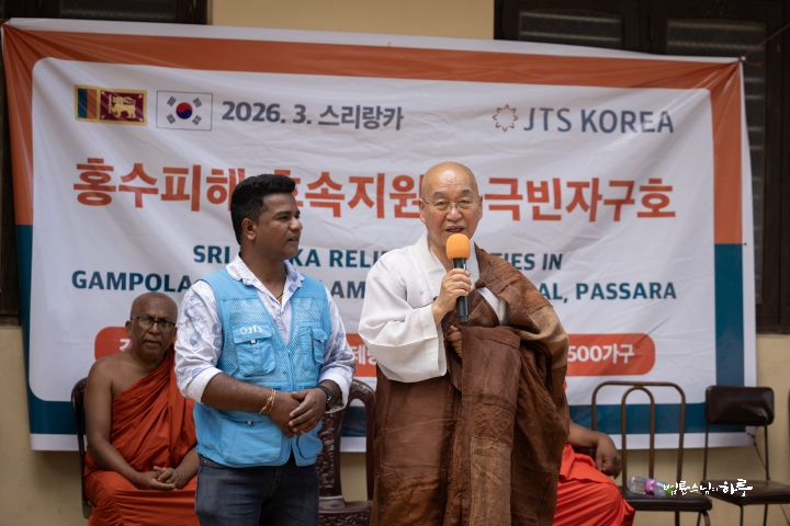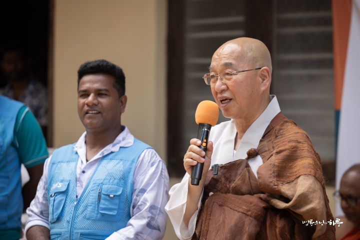 “저는 한국에서 온 법륜이라고 합니다. 지난번에 사이클론 디트와(Ditwah)로 인해 많은 피해를 입으셨지요? 저도 한국에서 스리랑카, 태국, 인도네시아에 100년 만의 큰비가 내려 많은 피해를 입었다는 소식을 듣고 무척 안타까웠습니다.