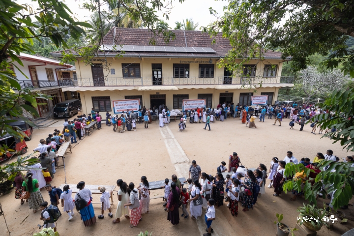 낮 12시, 스님과 JTS 일행은 구호품 배분 장소인 절에 도착해 점심을 먹었습니다. 스리랑카JTS 현지인 활동가들이 각자 집에서 반찬을 만들어 와 점심상을 차려 주었습니다.