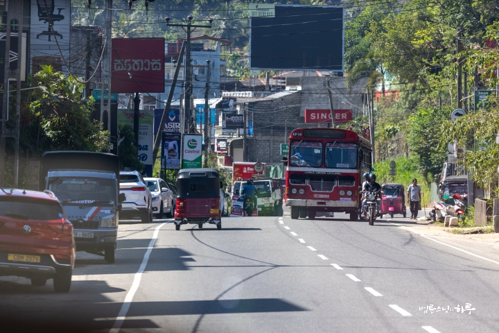 오전 7시 30분, 오늘의 첫 번째 목적지를 향해 길을 나섰습니다. 차는 감폴라 일대의 산길을 따라 달렸습니다. 차창 밖으로는 스리랑카의 아침 풍경이 조용히 흘러갔습니다.