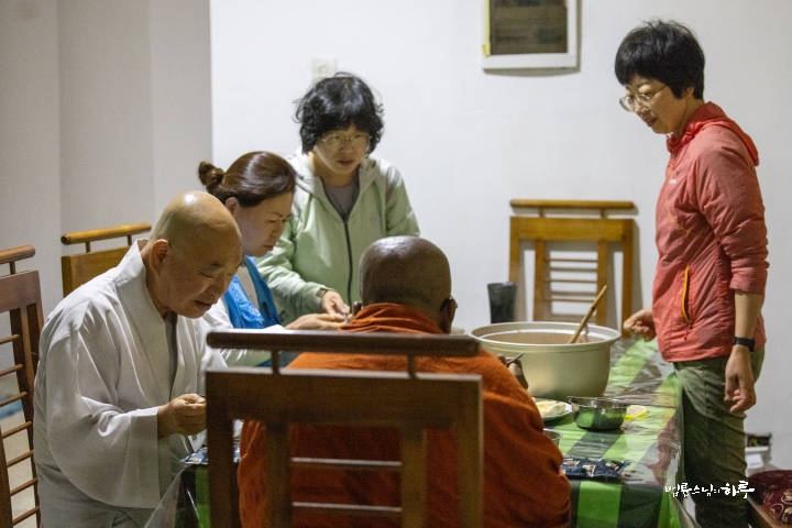 식사를 마치고 스님은 오늘은 일찍 쉬고 내일 깊이 이야기를 하자고 제안했습니다.
