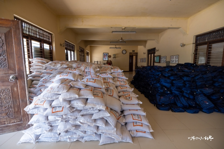구호품을 받아 든 주민들은 저마다 다른 모습으로 절을 빠져나왔습니다. 머리에 포대를 인 채 천천히 발걸음을 옮기는 할머니도 있었고, 양손에 짐을 나눠 든 채 조심스럽게 걸어가는 아주머니도 있었습니다. 어깨에 포대를 둘러멘 젊은이는 힘찬 걸음으로 앞서 나갔습니다. 무거운 짐을 들고도 주민들의 표정에는 오히려 생기가 돌았습니다.