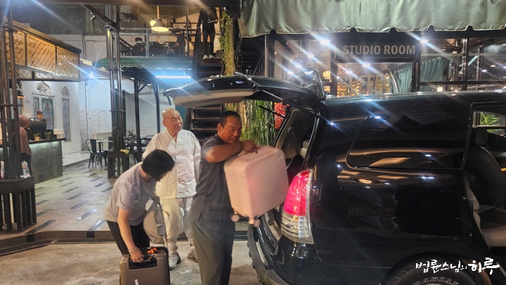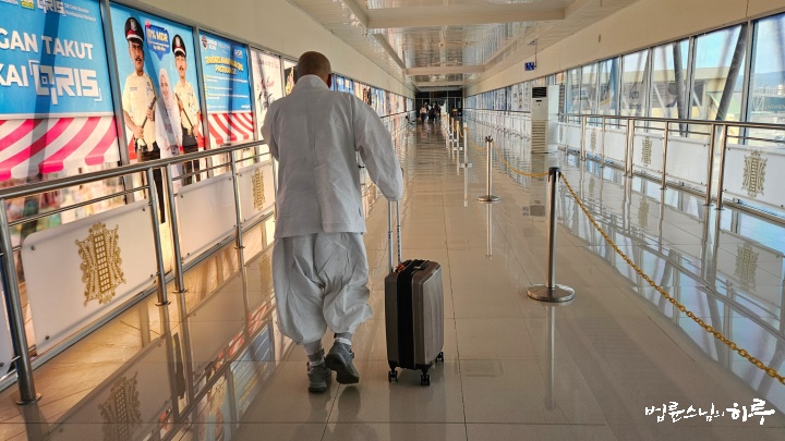 안녕하세요. 오늘은 스님이 인도네시아 홍수 피해 지역 구호 활동을 위해 한국에서 출발하는 날입니다.