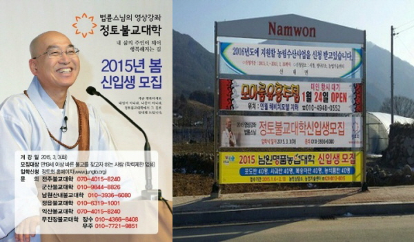▲전주정토회 불교대학 전단지와 남원산내면에 설치된 현수막