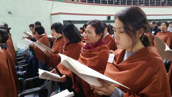 2월 8일(일) 충주 호암체육관에서 봄 불교대학, 경전반 졸업식이 진행되었습니다. 남양주법당 졸업생은 불대 8명, 경전반 4명으로, 졸업식장에 딱 들어서니 2,800명이나 되는 졸업생들이 운집해 있어서인지 감동이 밀려 왔습니다.