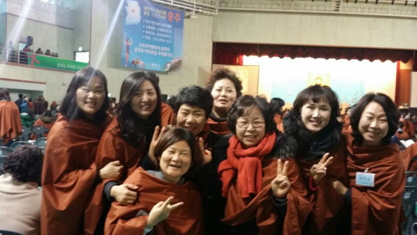 2월 8일(일) 충주 실내 체육관에서 진행된 2014년 봄불교대학 졸업식 및 수계식에서 사하법당은 18명의 졸업생을 배출하였습니다. 졸업생 중 개근 9명, 정근 3명으로 어느 법당보다 높은 출석률을 달성하였으며, 마음공부의 꽃인 ‘깨달음의 장’ 16명 수료에, 천일결사 입재자도 13명이나 된답니다. 봄불교대학 담당자였던 장명순 보살님에게 노하우를 들어보았습니다.