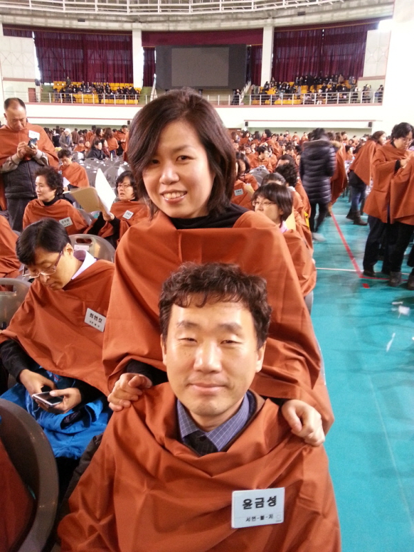 남편은 종교를 넘어서 생활의 철학으로 스님의 법문을 받아들이고 있었습니다. 늦은 퇴근에다 해운대법당까지 거리도 멀어 수업시간을 맞추기에는 무리일 것 같아 걱정이 되었지만, 남편은 2014년 2월에 봄경전반을 졸업하면서 개근상까지 품에 안았고, 어느새 정토맨이 되어 있었습니다.