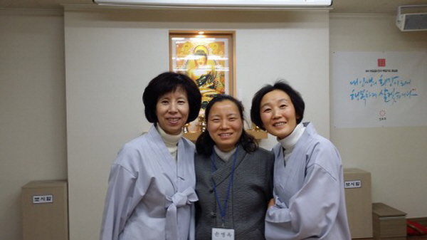 ▲ 중앙이 주인공인 손명옥 보살님, 오른쪽은 손미옥 보살님, 왼쪽은 정읍법당 총무 서순석 보살님~
