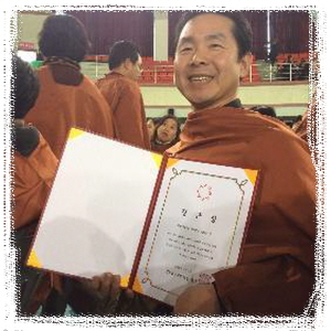 ▲2015년 2월 8일, 졸업식에서 정근상 상장을 들고 미소 짓고 있는 박범주 거사님~^^