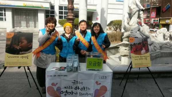 ▲ JTS 거리모금 중인 따뜻한 거사님!(오른쪽에서 두 번째^^)