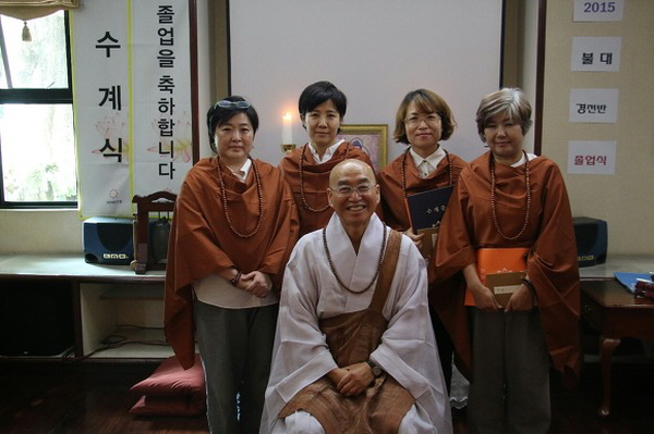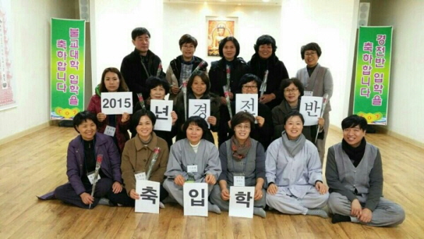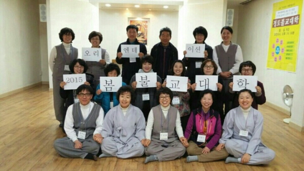 ▲ 2015년 덕산법당 봄불교대학 입학식. 첫째 줄 가운데가 진옥희 보살님~