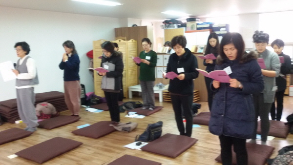 ▲ 책자를 보며 의식을 따라하는 도반들~