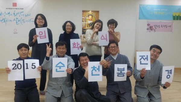 ▲ 경전반 입학생들~ 도반들의 환한 미소가 봄을 맞은 순천의 봄 전경마냥 화사합니다~ㅋㅋㅋ